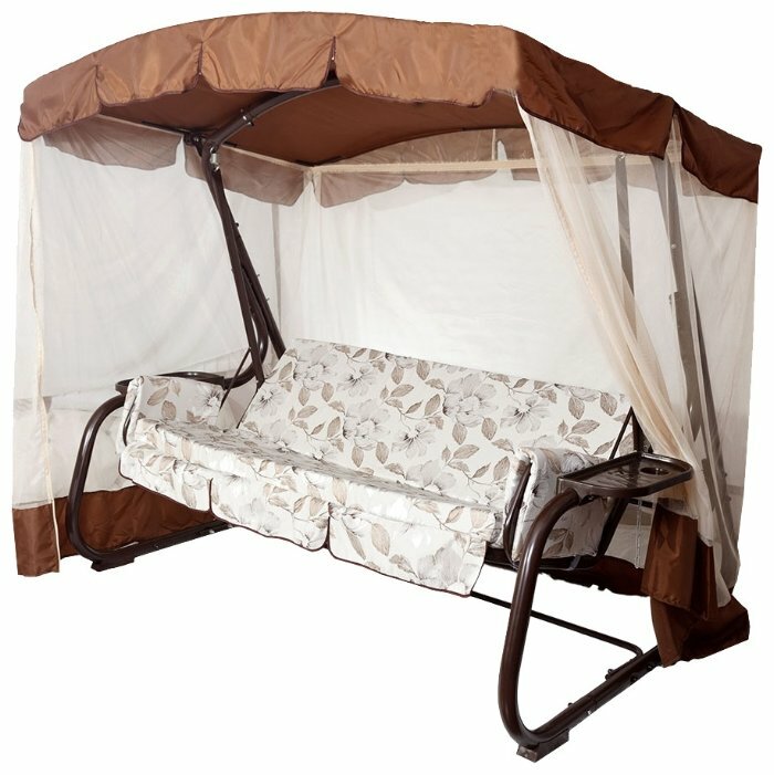 Качели садовые 3-х местные Мебельторг Турин Каркас коричневый/Бежевый рис.цветы