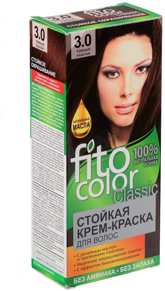 Стойкая крем-краска для волос без аммиака FitoColor Fito косметик,3.0 Темный каштан, 115 мл (в наборе 3 шт)