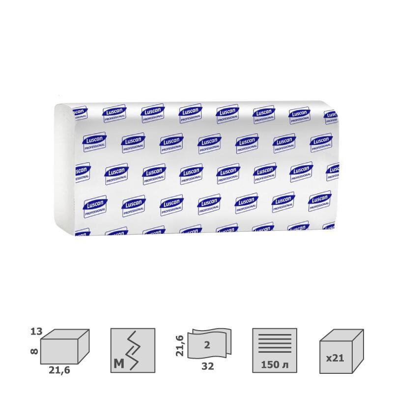 Полотенца бумажные листовые Luscan Professional M-сложения 2-слойные 21 пачка по 150 листов (арт.601116)
