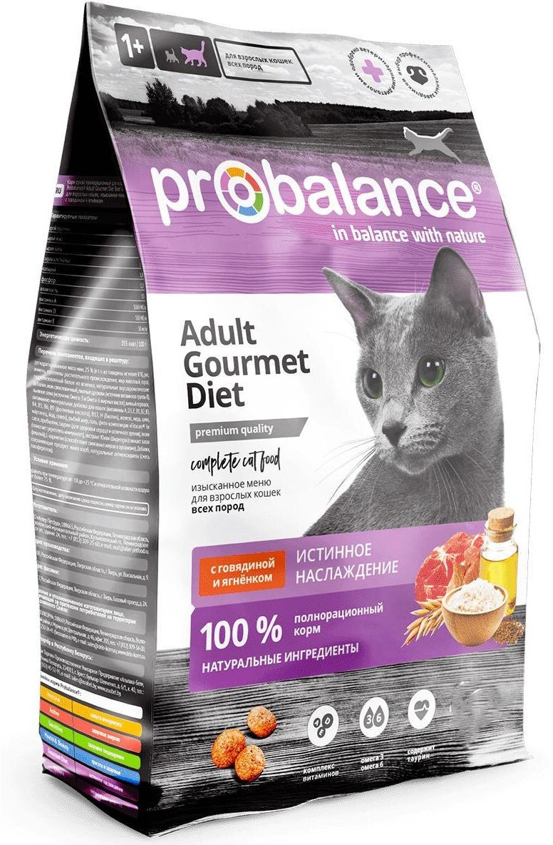 Корм ProBalance Gourmet Diet для взрослых кошек с говядиной и ягненком, 1,8 кг