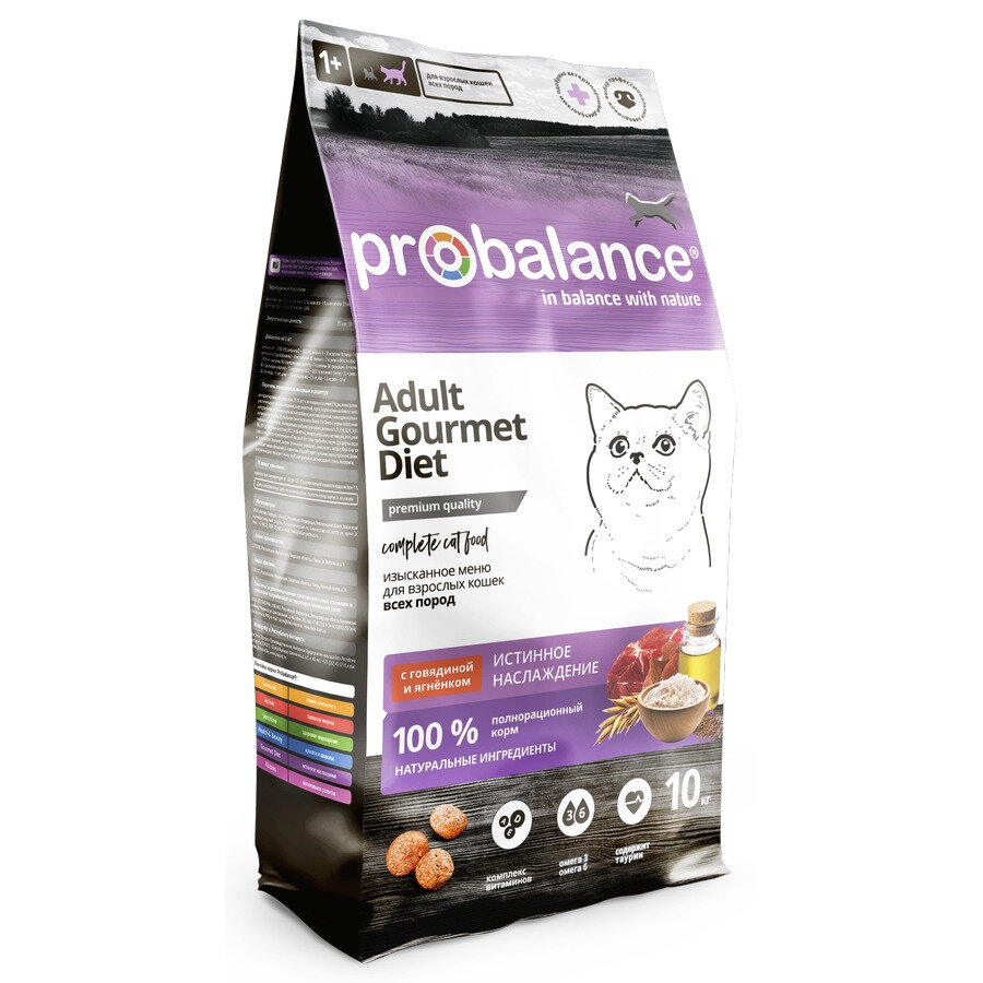 Сухой корм ProBalance Gourmet Diet для взрослых кошек с говядиной и ягненком, 10кг