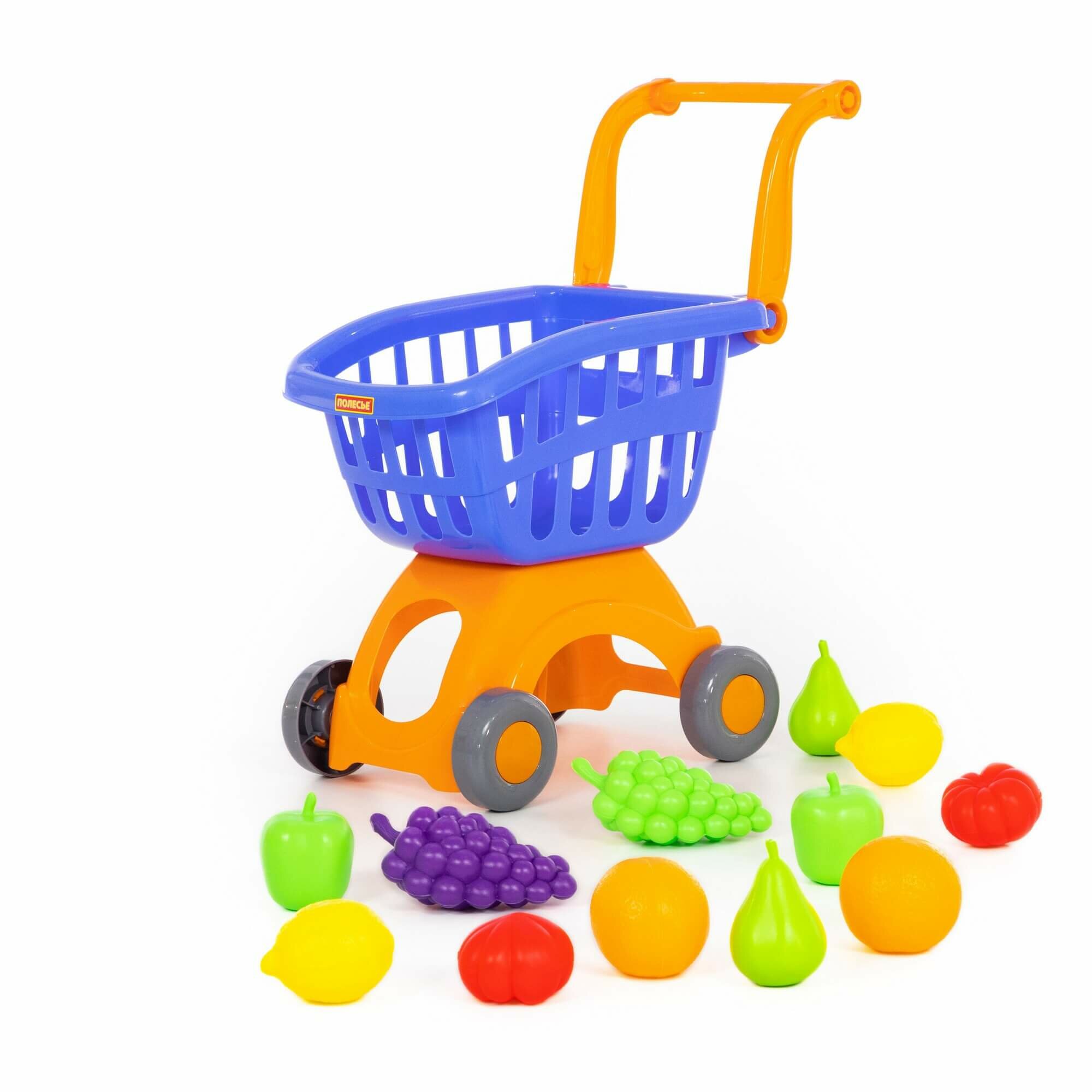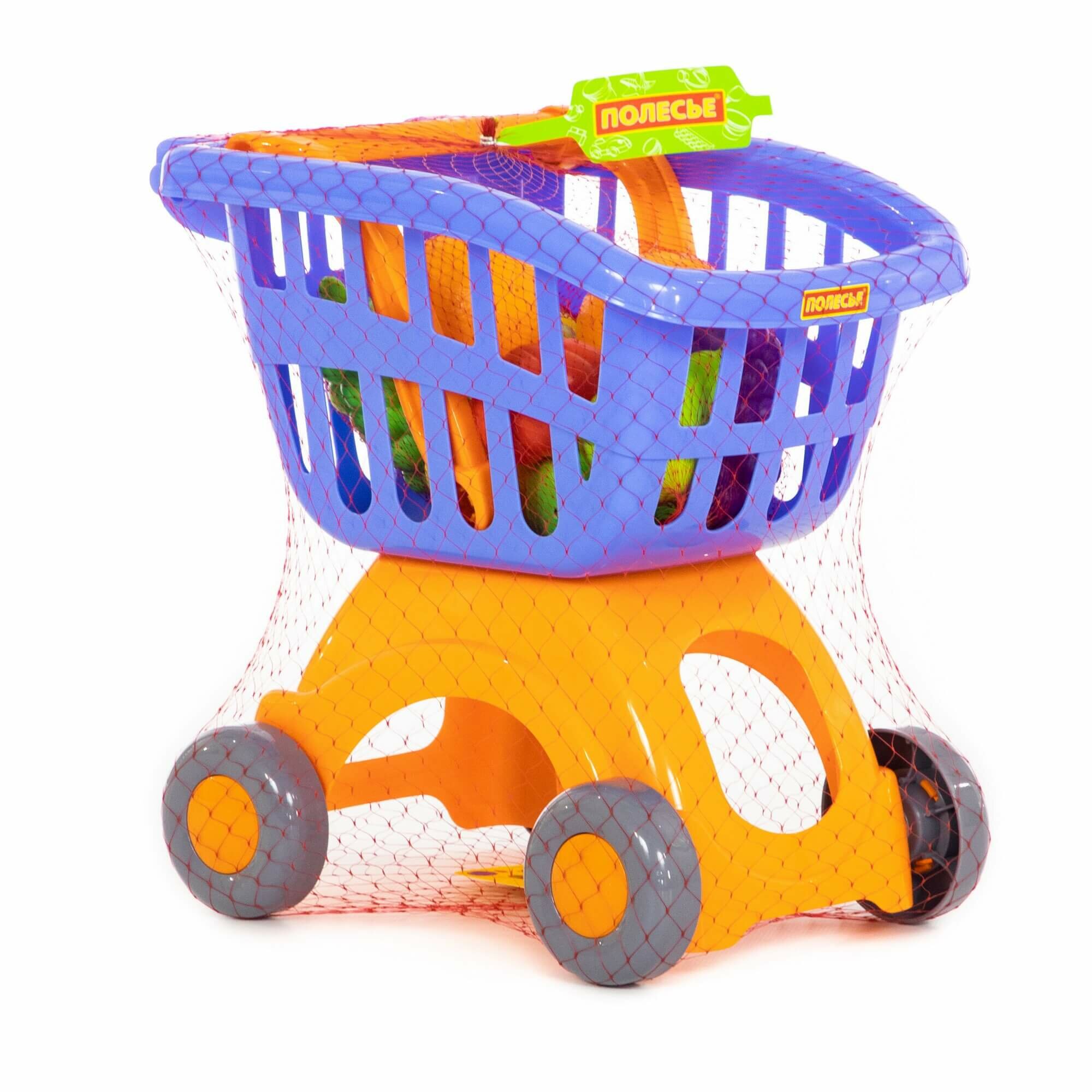Полесье Тележка для маркета Мини + набор продуктов №15 (12 элементов) (в сеточке)