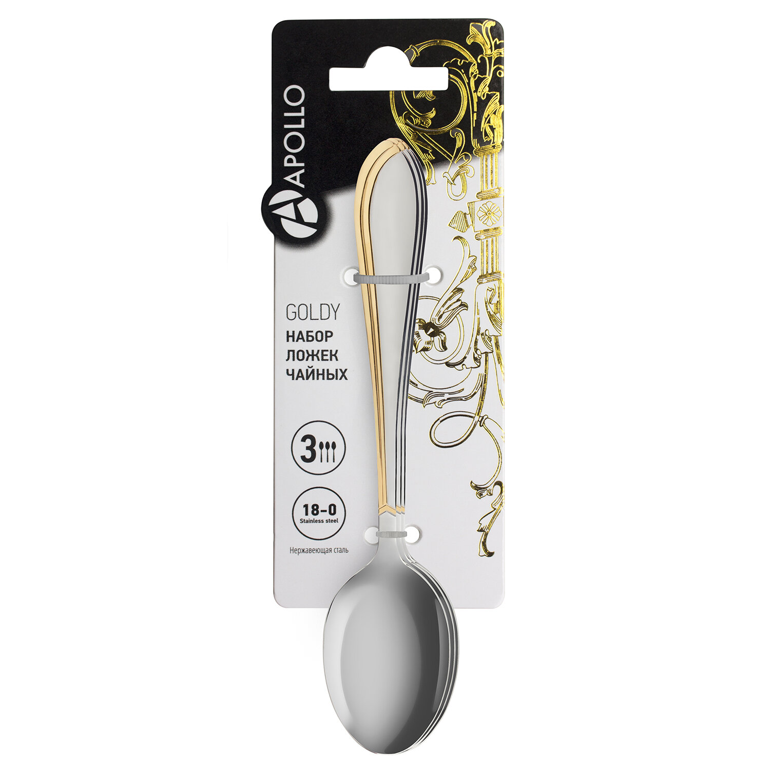 Ложка нержавеющая сталь, 3 предмета, чайная, Apollo, Goldy, GLD-53