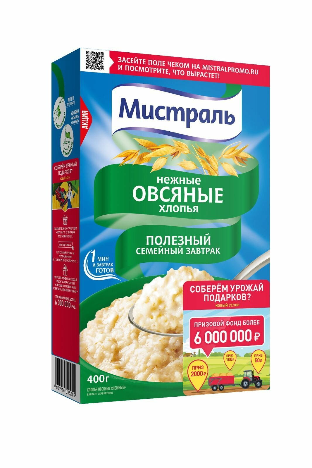 Купить Хлопья мистраль 400 г Овсяные Нежные, 1 шт