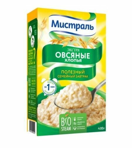 Хлопья мистраль 400 г Овсяные Нежные, 1 шт интересное:
