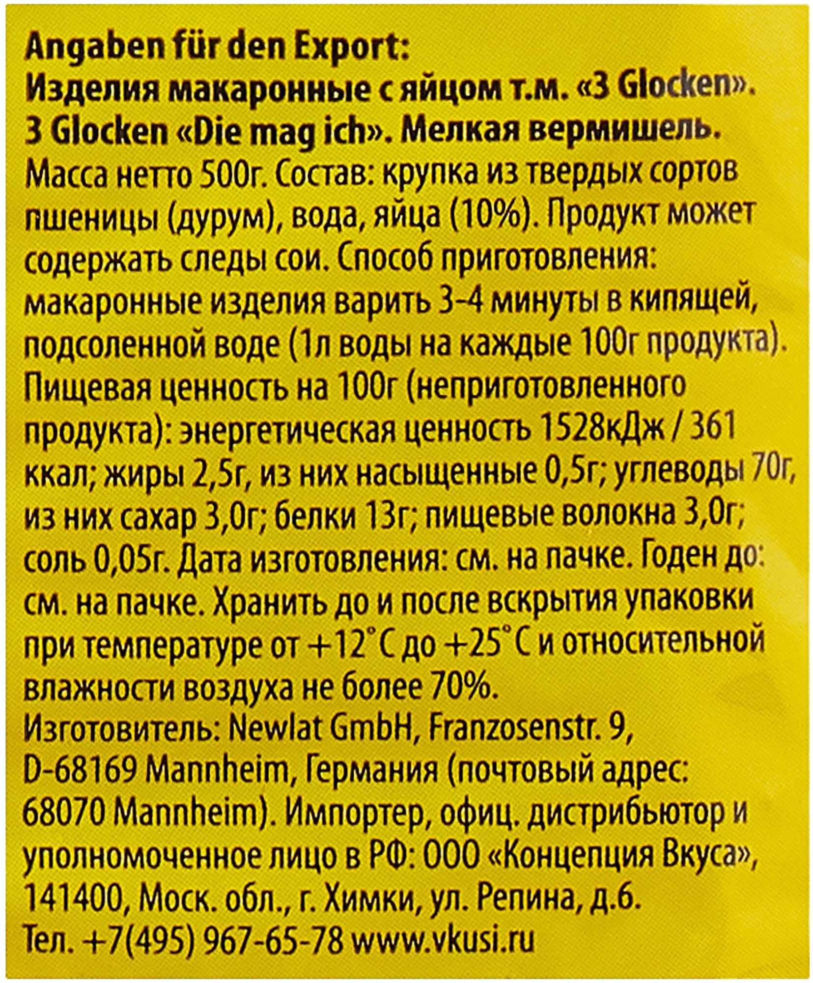 Вермишель 3GLOCKEN Die Mag Ich мелкая, 500г - 3 GLOCKEN интересное: