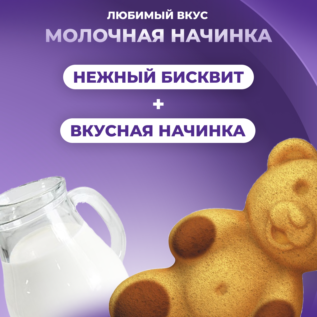 Пирожное бисквитное медвежонок барни с молочной начинкой, 240г