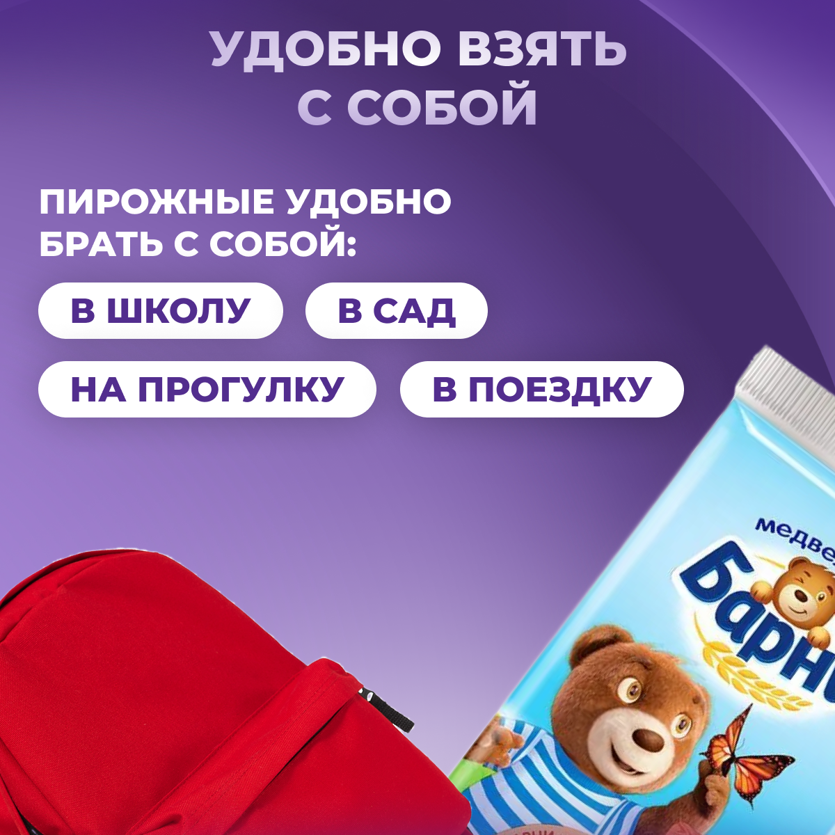 Барни Медвежонок Барни пирожное бисквитное с молочной начинкой бисквит 150 г