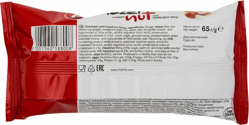 Круассан 7DAYS с кремом фундук, 65г
