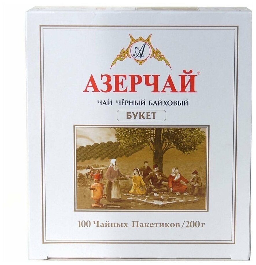 Чай азерчай "Букет" черный, 100 пакетиков с ярлычками по 2 г, картонная коробка, 419831