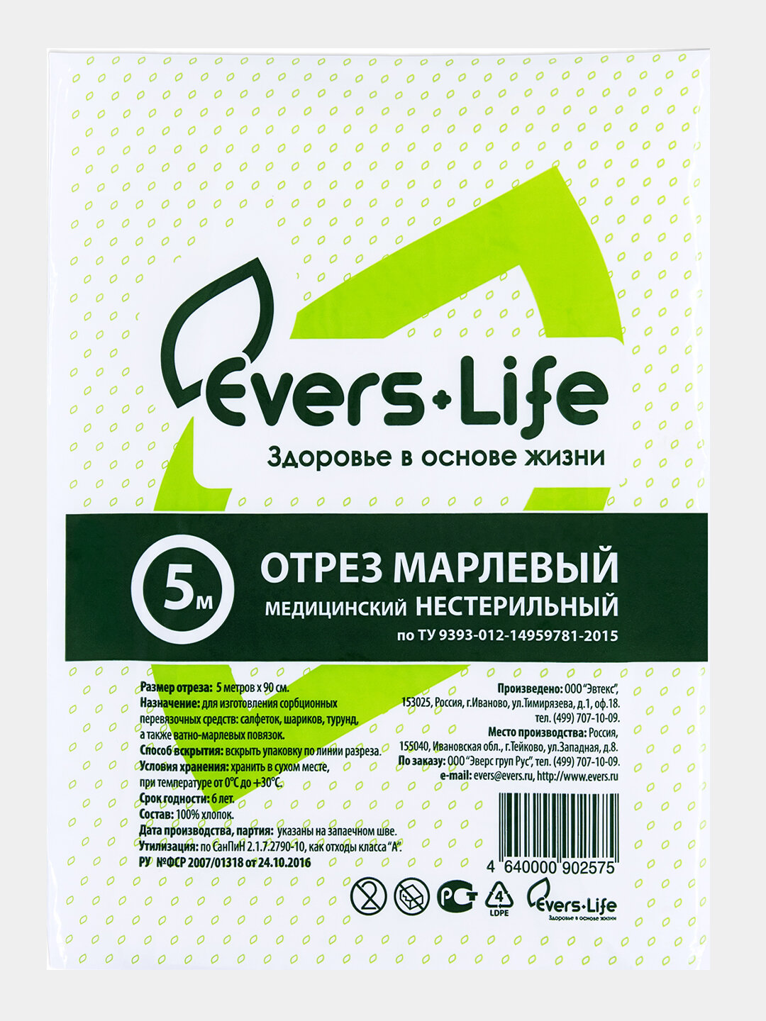 Марлевый отрез медицинский 5м фасовка 100% хлопок EVERS Life