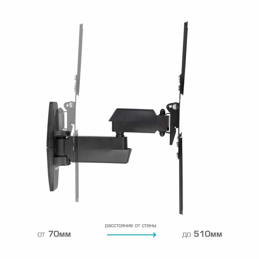 Для телевизоров VLK Кронштейн VLK TRENTO-7, для ТВ, наклонно-поворотный, 22"-55", 85-395 мм от стены, черный