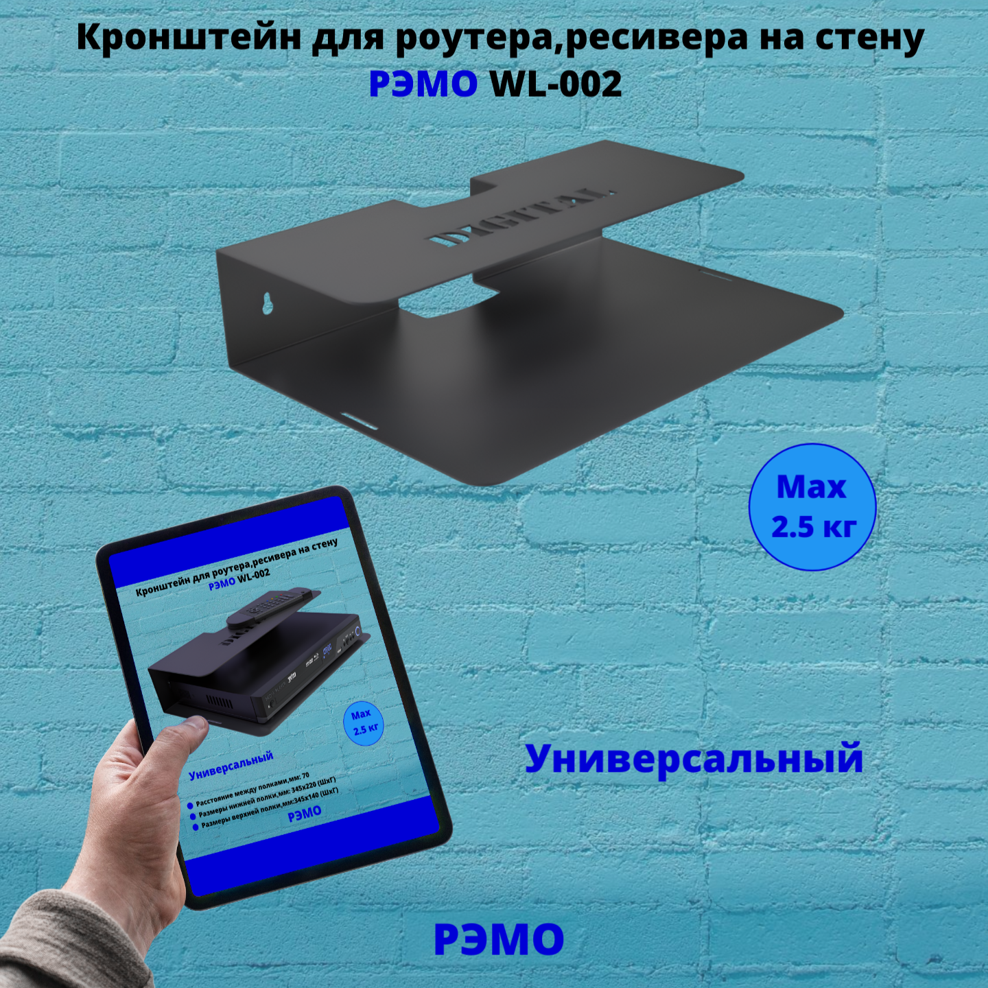 Кронштейн-полка на стену металлическая для DVB-T2 приставок Рэмо BAS WL-002(Wall Shelf-M),черный интересное: