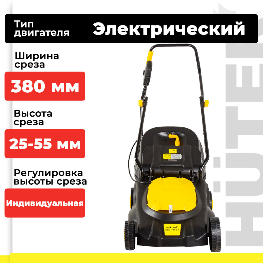Электрическая газонокосилка Huter ELM-1400, 1400 Вт, 38 см