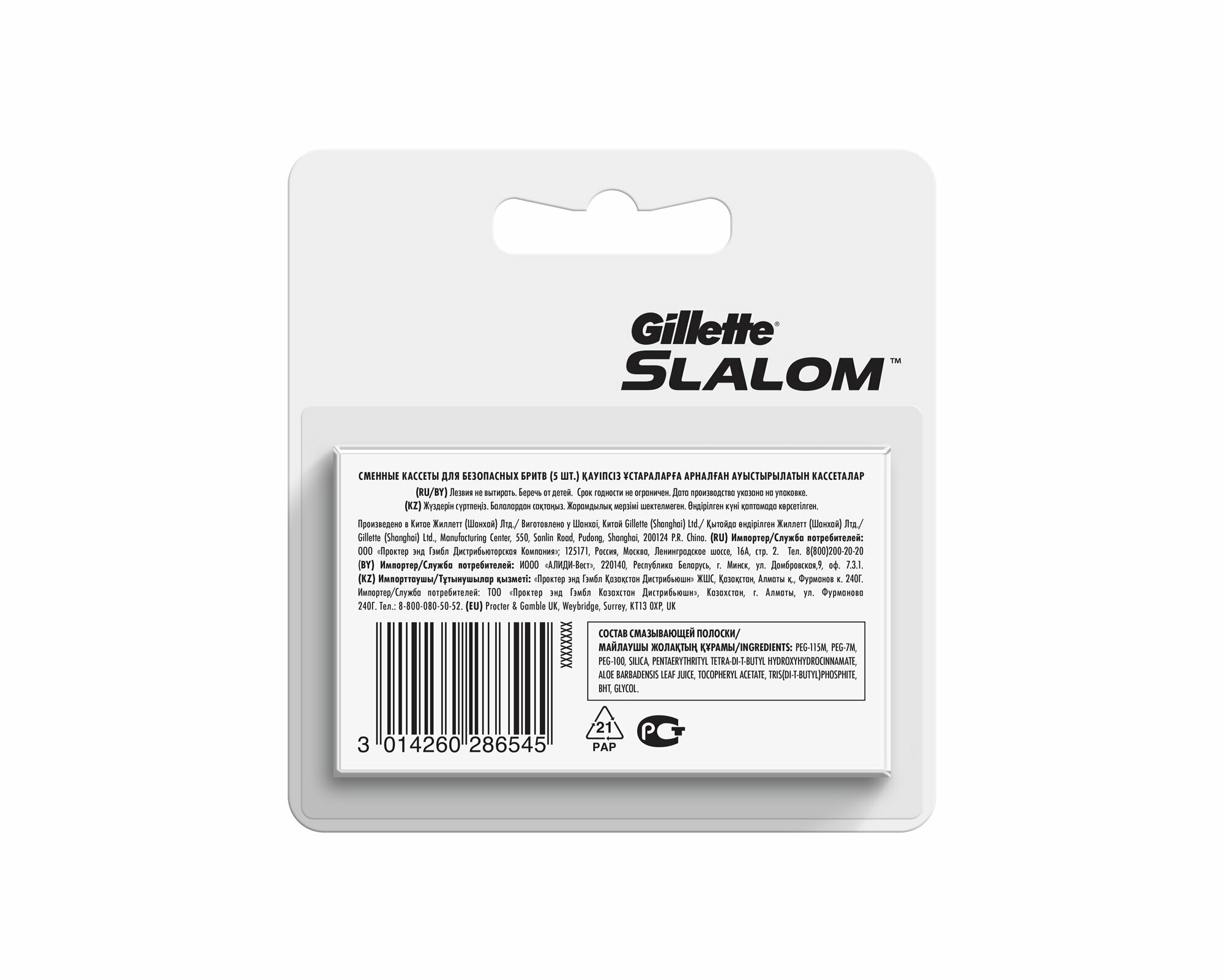 Сменные кассеты Gillette Slalom с экстрактом алоэ, 5 шт.