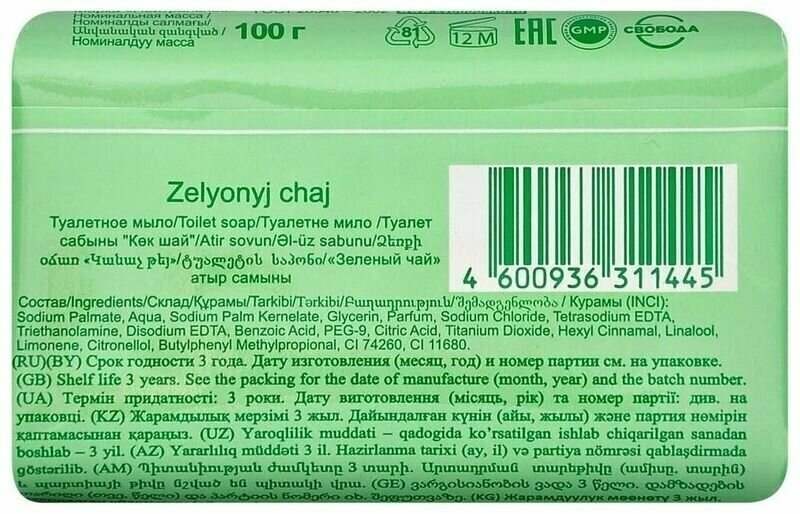Мыло туалетное свобода, зеленый чай, 100 г