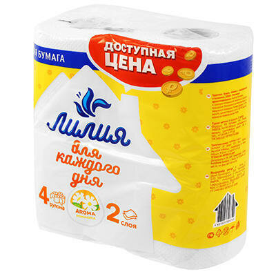 Лилия Туалетная бумага «Лилия» Ромашка, 2 слоя, 4 рулона, белый цвет