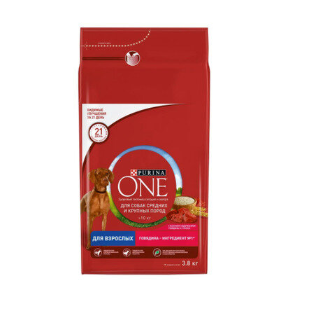 PURINA ONE для взрослых собак средних и крупных пород с говядиной и рисом (3,8 кг)