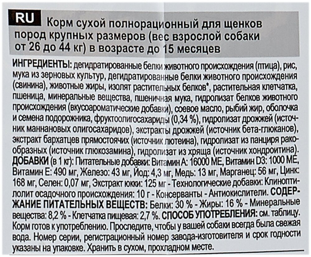 | Плюсы: | Щенок хорошо ест, не чешится. Можно размочить. |