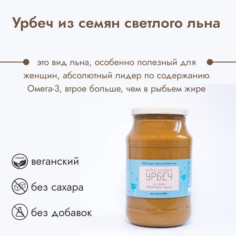 Урбеч Живой Продукт из семян светлого льна 965 грамм интересное: