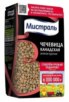 Чечевица 450 г мистраль зеленая крупная Канадская, 1 шт интересное: