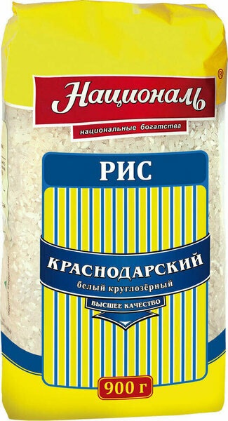 Рис Националь Краснодарский белый круглозерный, 900 г, 12 шт.