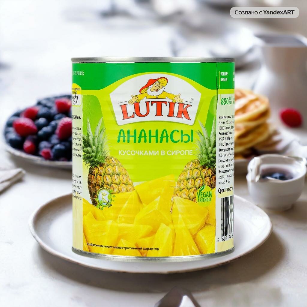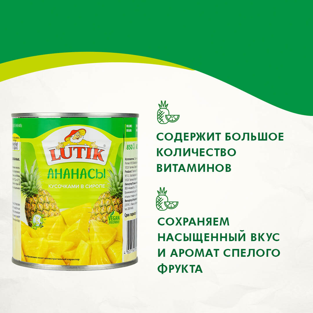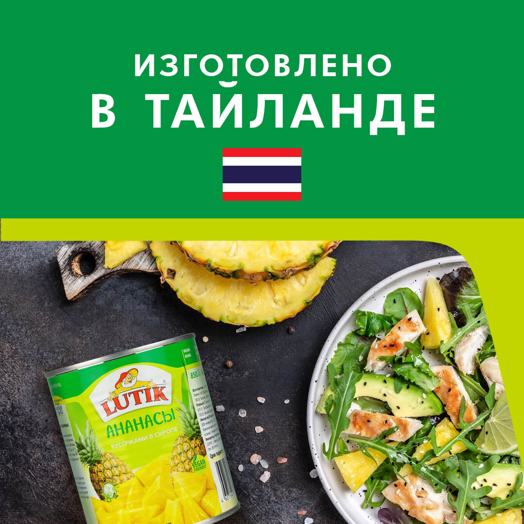 Ананасы Lutik консервированные кусочками в сиропе, 850мл