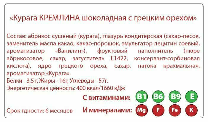 Конфеты "Курага Кремлина шоколадная с грецким орехом", п/п 600 гр интересное: