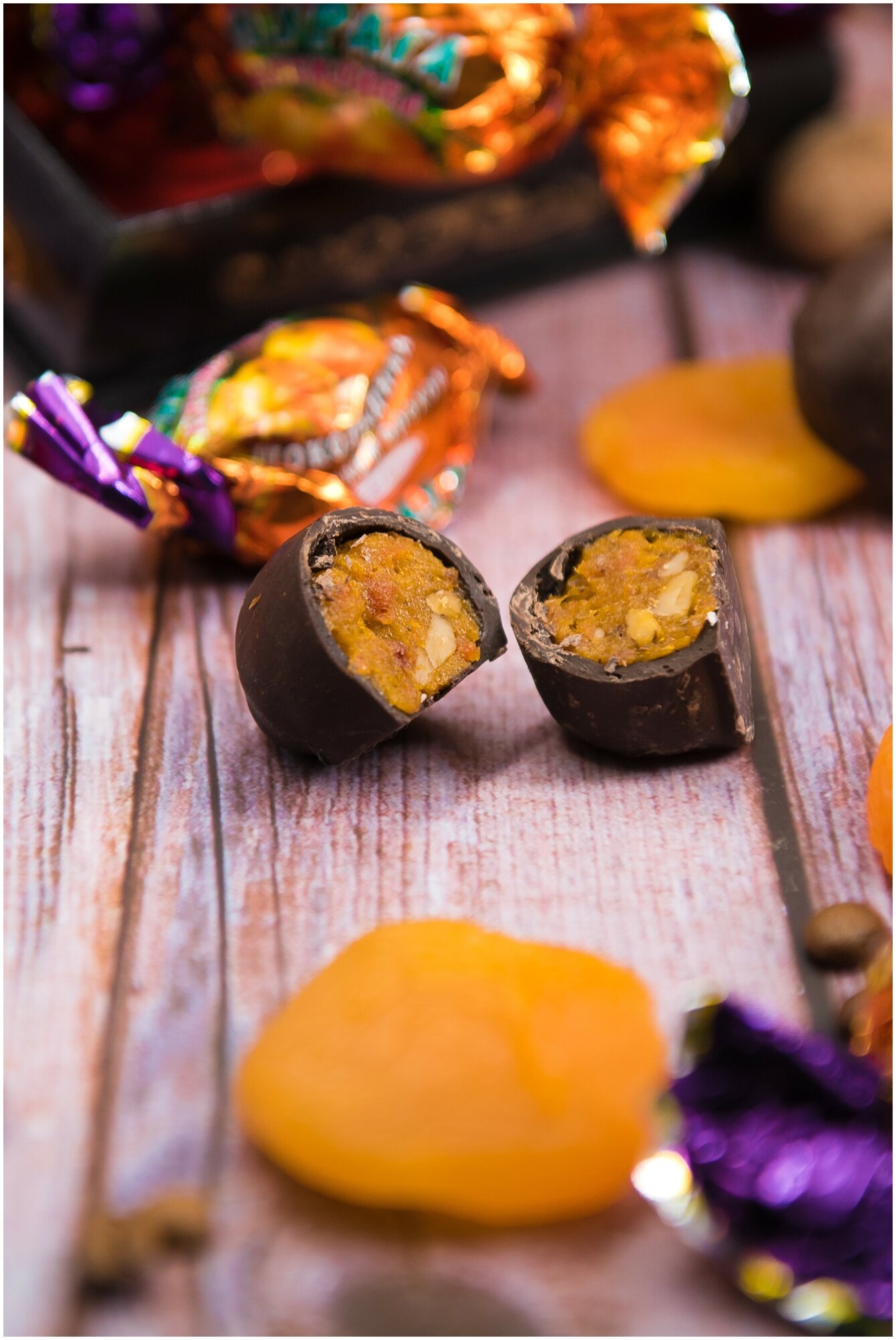 Конфеты из кураги с грецким орехом Курага шококоладная с грецким орехом , короб-телевизор 2 кг