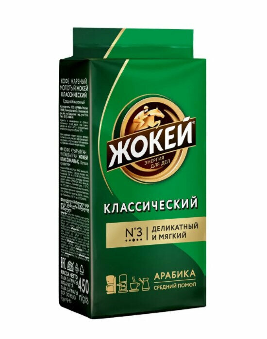 Кофе молотый Жокей Классический, вакуумная упаковка, 450 г