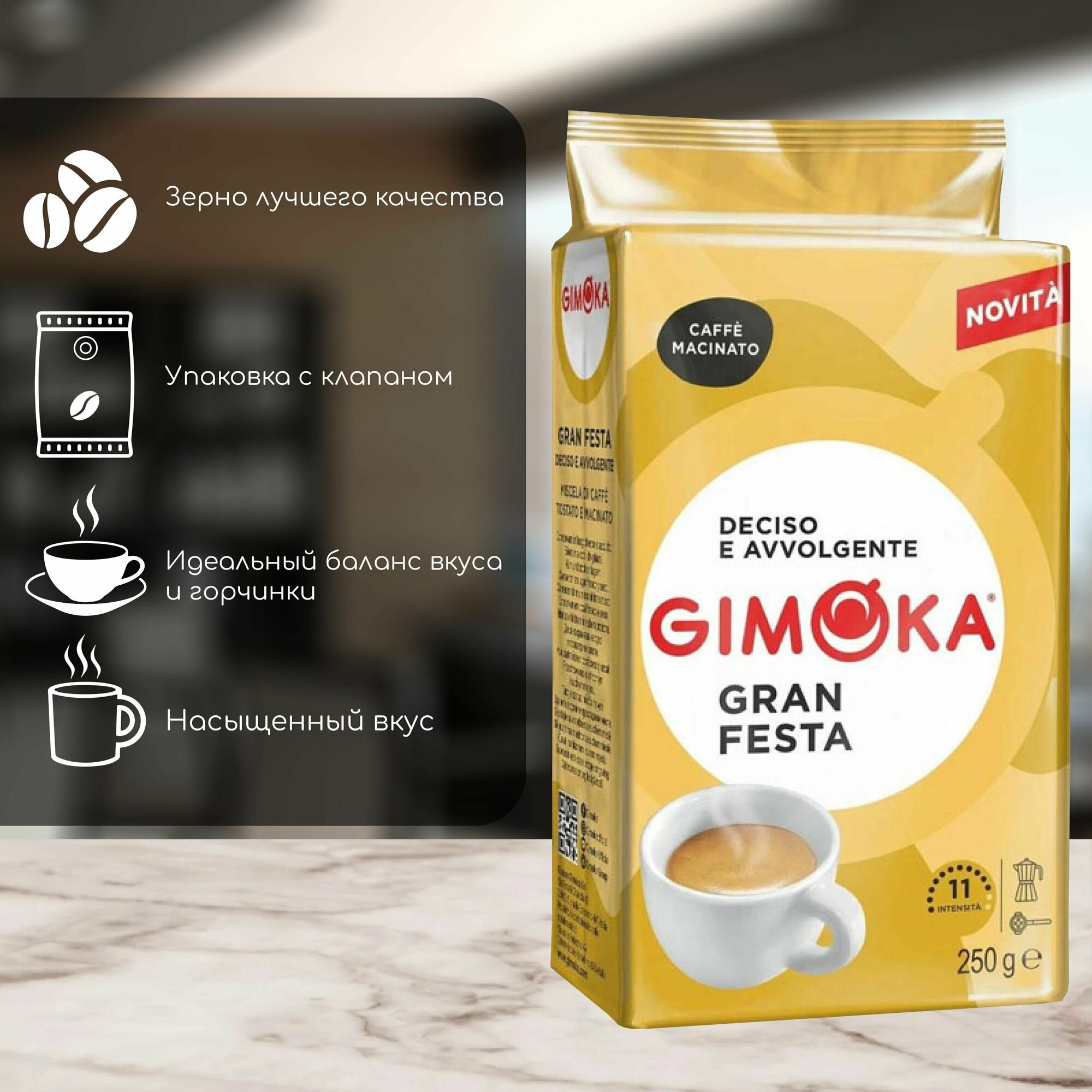 Кофе молотый "Gimoka Gran Feste", 250 гр, Италия