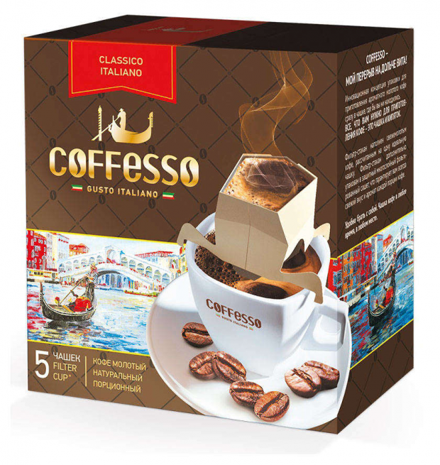 Молотый кофе Кофе Coffesso Classico Italiano, в дрип-пакетах, 5 уп., 45 г