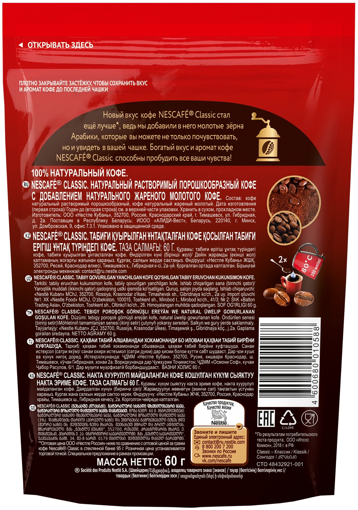 Купить Nescafe Classic/Кофе Нескафе Классик пакет 60г