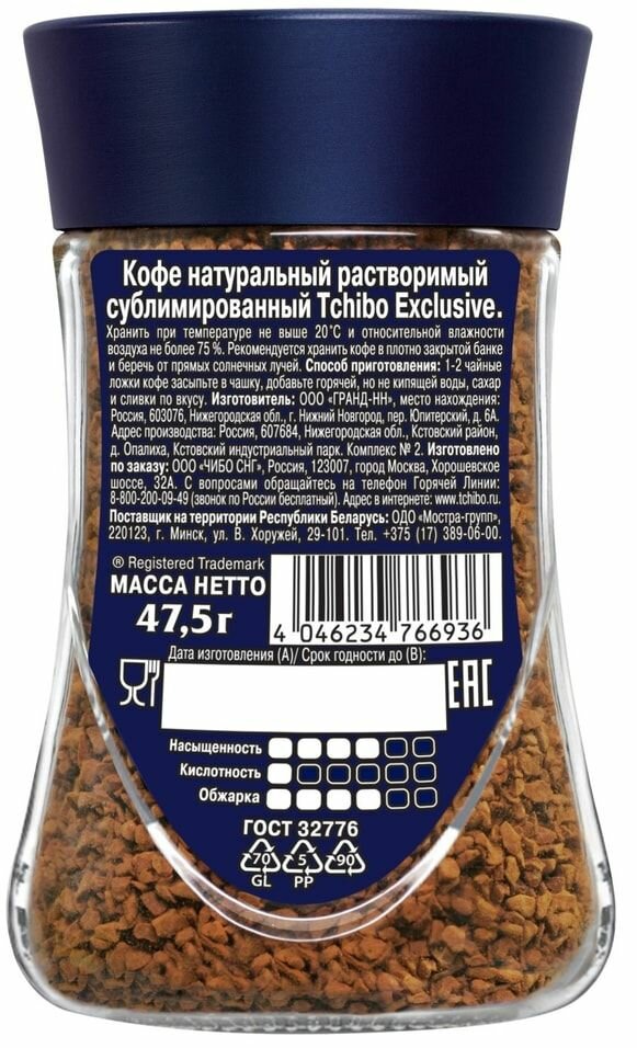 Кофе растворимый Tchibo Exclusive, стеклянная банка, 47.5 г