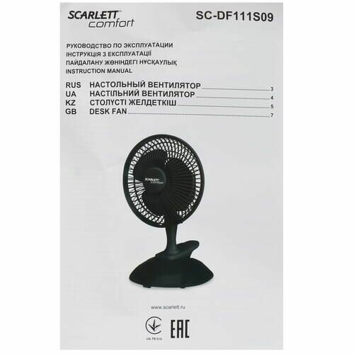 Вентилятор Scarlett SC - DF111S09 черный [настольный, 25 Вт, скоростей - 2, диаметр - 150 мм]