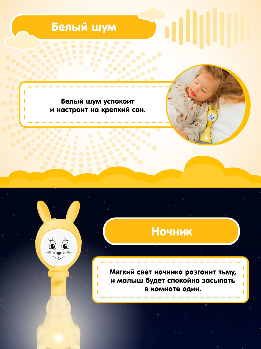 Развивающая игрушка BertToys Интерактивный Музыкальный Умный Зайка Няня Белый шум и ночник Желтый