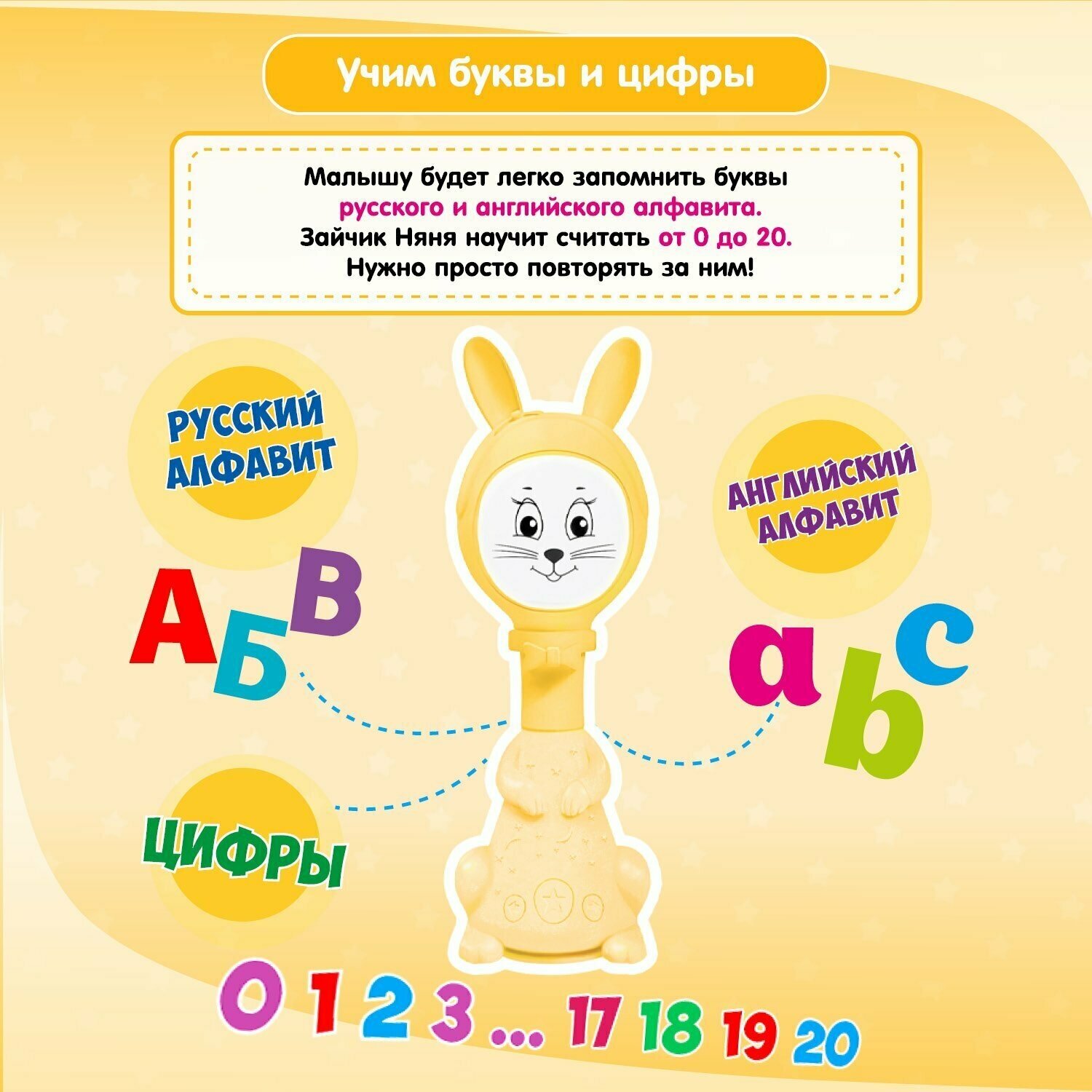 Купить Интерактивная развивающая игрушка BertToys Зайчик Няня (12 режимов), желтый