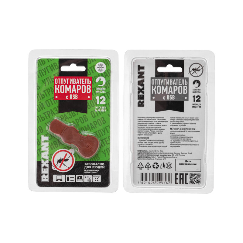 Ультразвуковой отпугиватель комаров c USB REXANT Артикул 71-0024