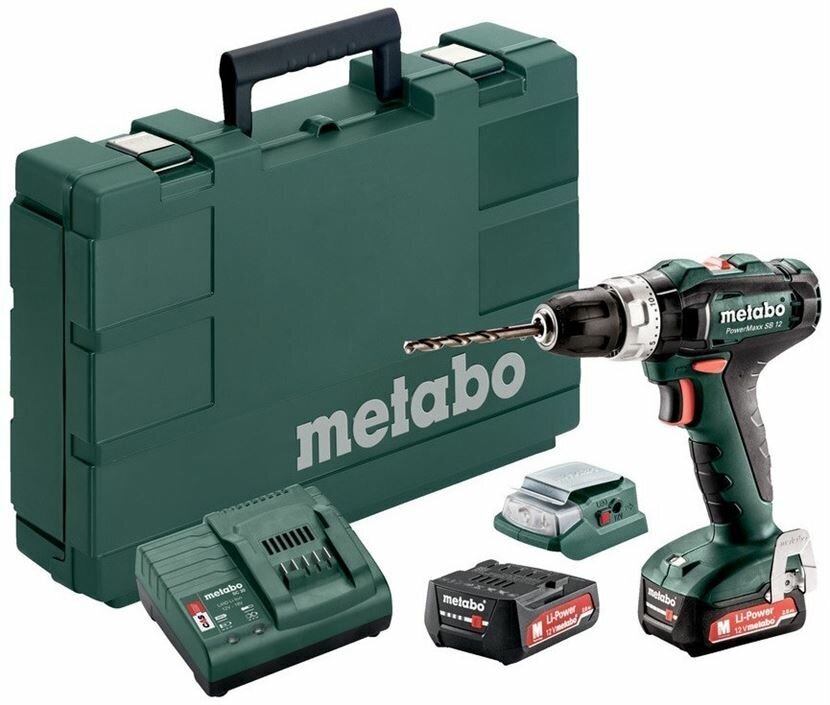 Дрель-шуруповерт ударная Metabo PowerMaxx SB (601076500), 12В Li-ion 2x2 Ач