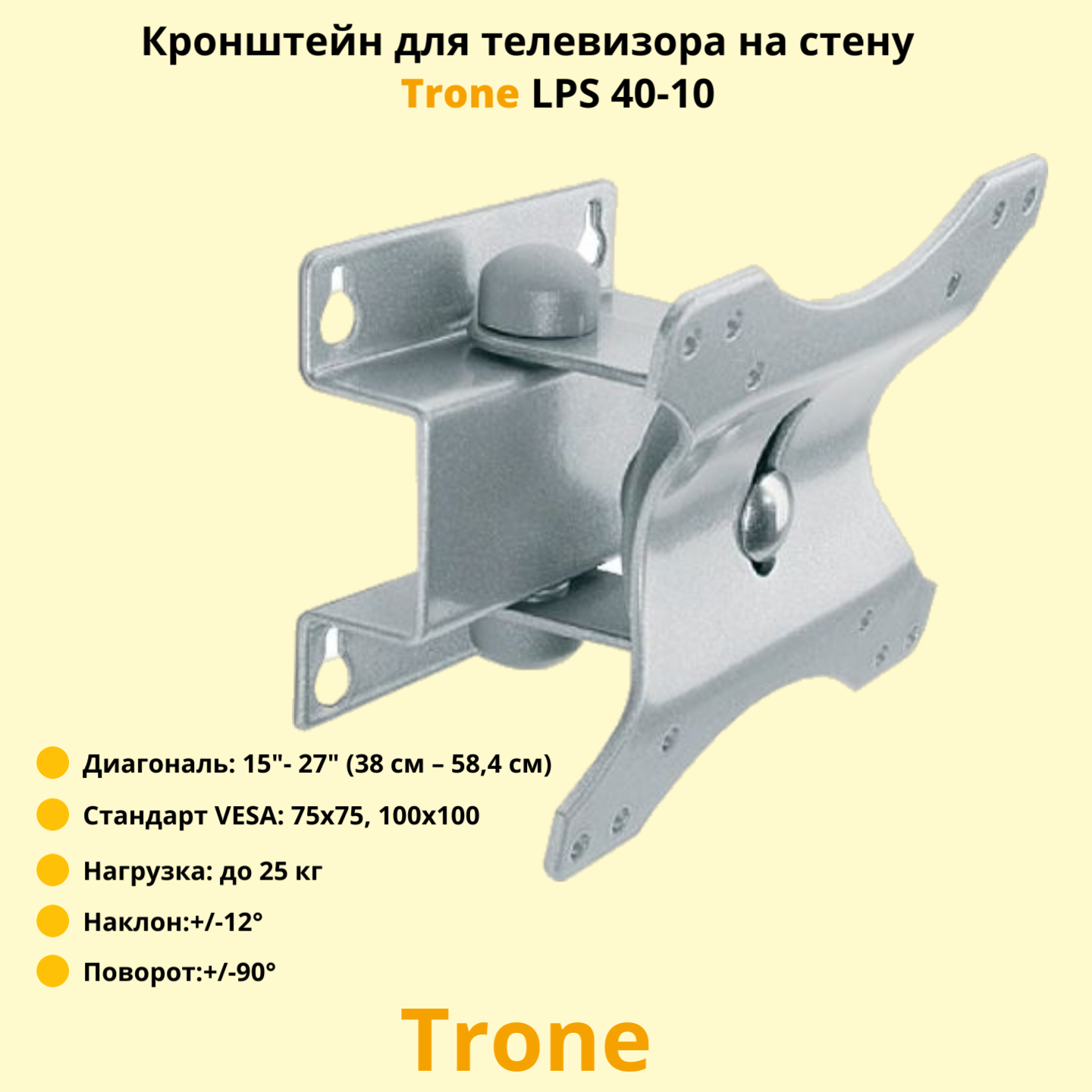 Кронштейн для телевизора Trone LPS 40-10 настенный с наклоном и поворотом до 25кг VESA 75-100мм серебристый