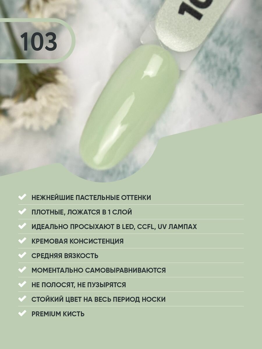 Гель лак для ногтей Пастельная коллекция Gelato №103, светло-зеленый, 8 мл