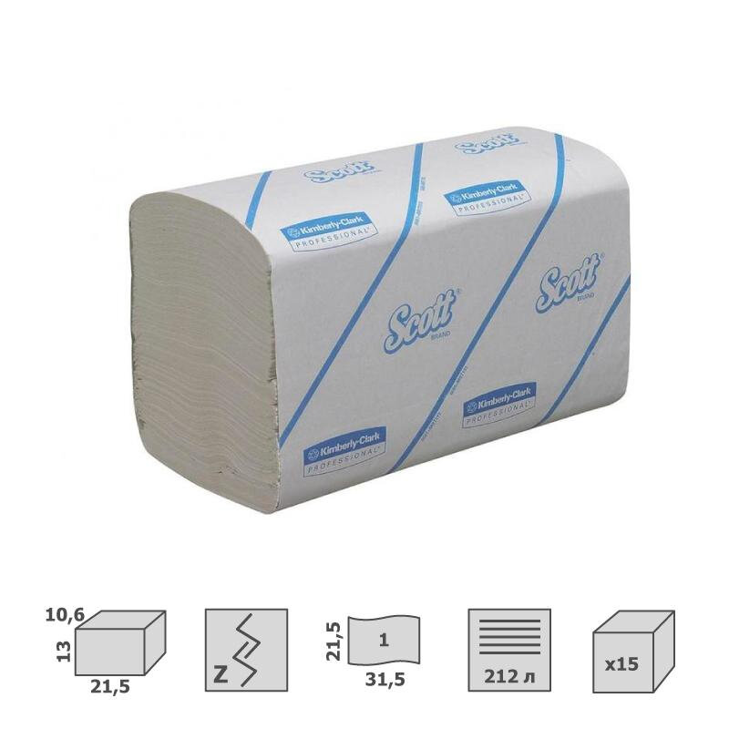 Полотенца бумажные для держателя 1-слойные Kimberly-Clark Scott Perform, листовые S/Z-сложения, 15 пачек по 212 листов (6663) интересное: