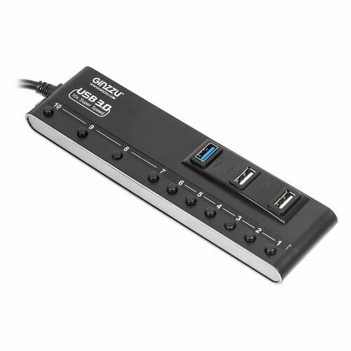 Разветвитель GINZZU USB GR-380UAB 10 портов (4xUSB 3.0 + 6xUSB 2.0 + адаптер) черный