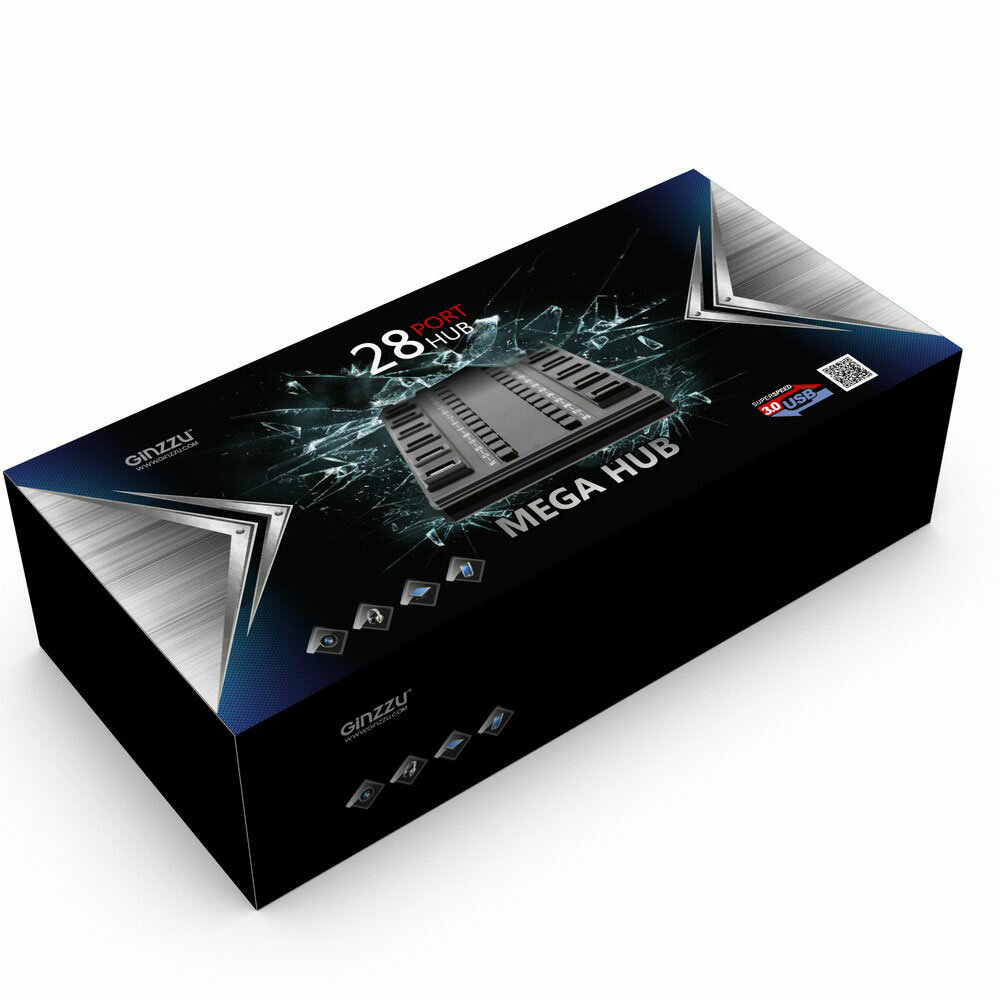 Разветвитель USB GINZZU GR-328UAB 28 портов (4xUSB 3.0 + 24xUSB 2.0 + адаптер) черный (GR-328UAB)