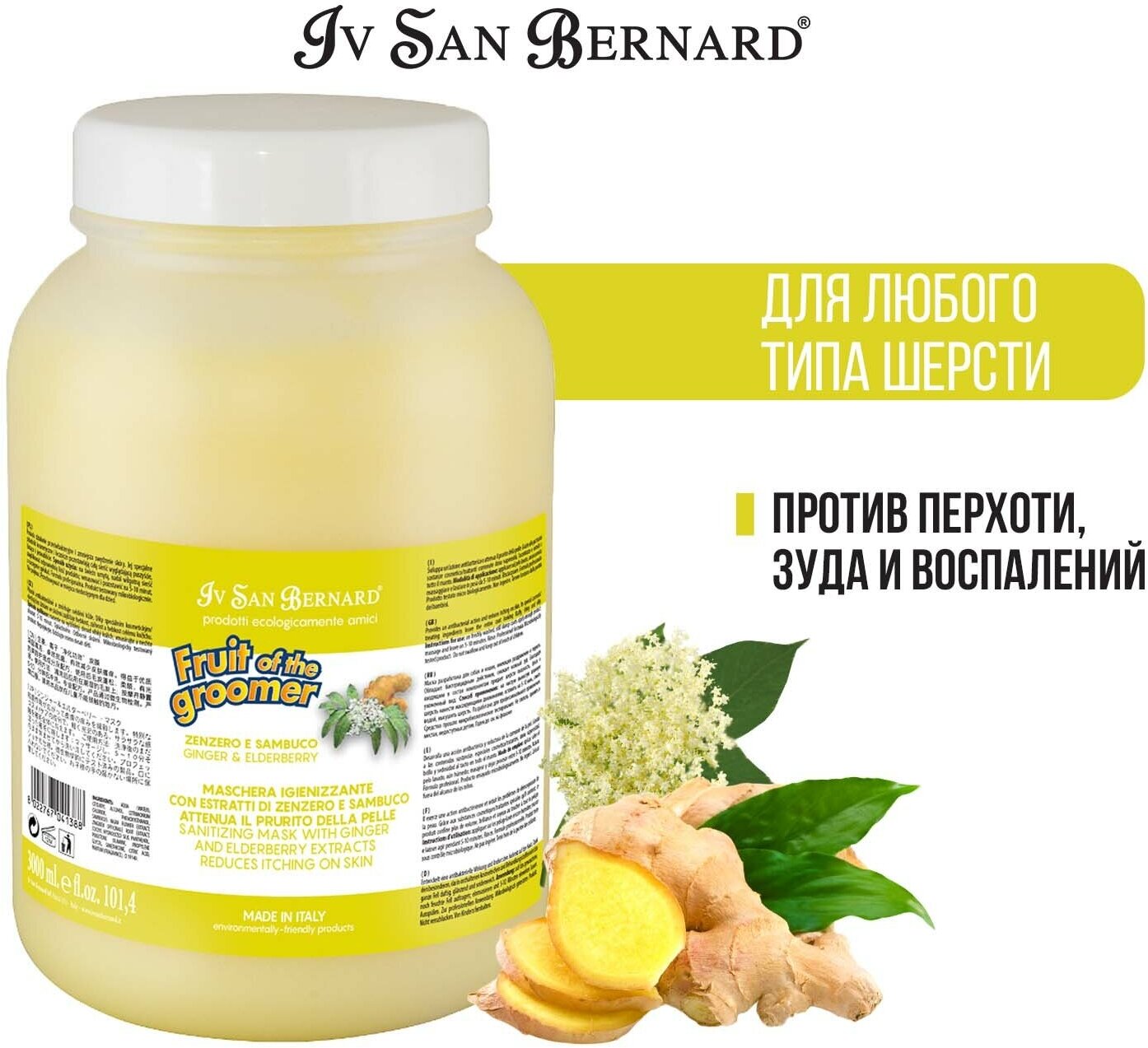 Маска Iv San Bernard Fruit of the Groomer Ginger and Elderberry восстанавливающая с антибактериальным эффектом для кошек и собак , 1 л , 1.041 кг