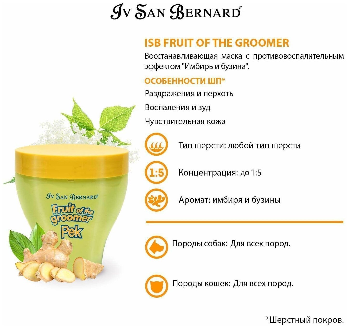 IV SAN BERNARD FRUIT OF THE GROOMER GINGER & ELDERBERY MASK маска восстанавливающая Имбирь и бузина с противовоспалительным эффектом для собак и кошек (250 мл)