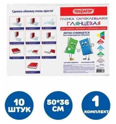 Пифагор Пленка самоклеящаяся для учебников и книг 10 шт 50х36 см, 100 мкм, глянцевая 224317