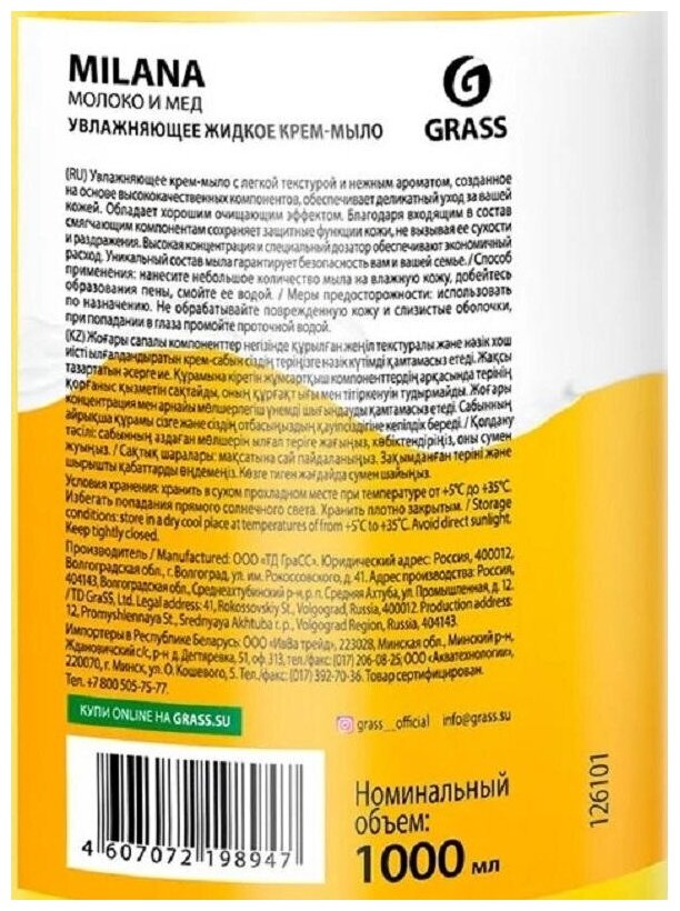 Жидкое крем-мыло Milana "Манго и лайм", 1 л GRASS 4289697 .