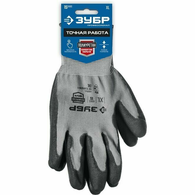 ЗУБР точная работа, L, тонкое покрытие для точных работ, перчатки с полиуретановым покрытием, Профессионал (11275-L)