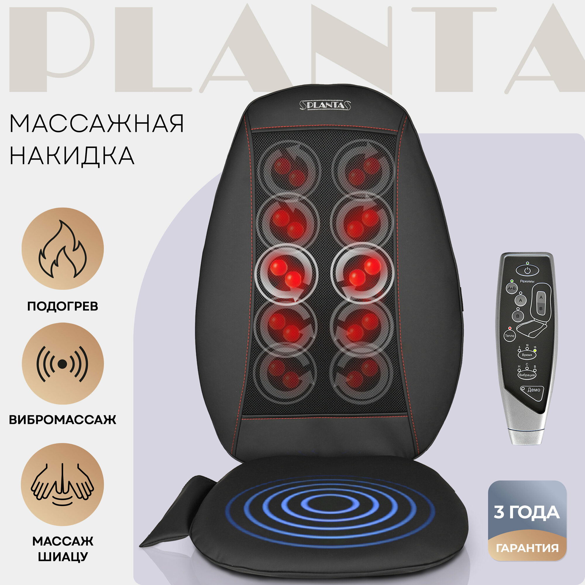 Купить PLANTA Массажная накидка Шиацу MN-500B с подогревом и вибромассажем, 18 режимов, 3 уровня интенсивности, автоадаптер